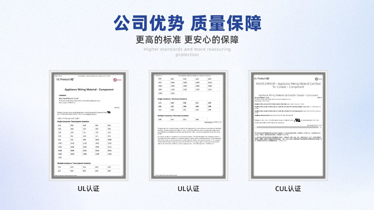 無錫勝維電氣有限公司自成立以來,已通過國際質量管理體系ISO14001、ISO9001、 IAFT16949等質量體系認證;所生產的電纜產品已獲得國內外權威機構認證(UL、CUL、 CQC、CCC、CE等多國認證)。